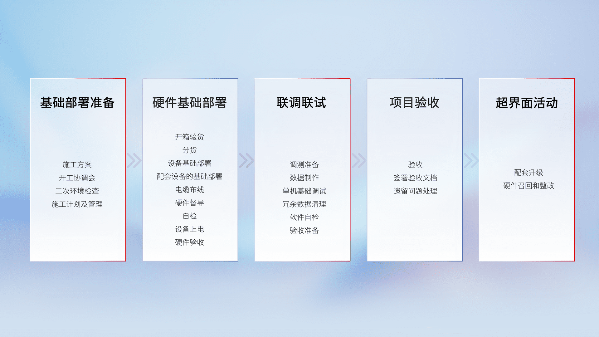 从基础部署准备、、、、硬件基础部署、、、、联调联试、、、、项目验收、、、越界面活动的全过程可追溯,,保证施工质量和进度。。。。